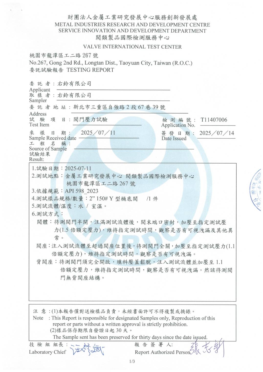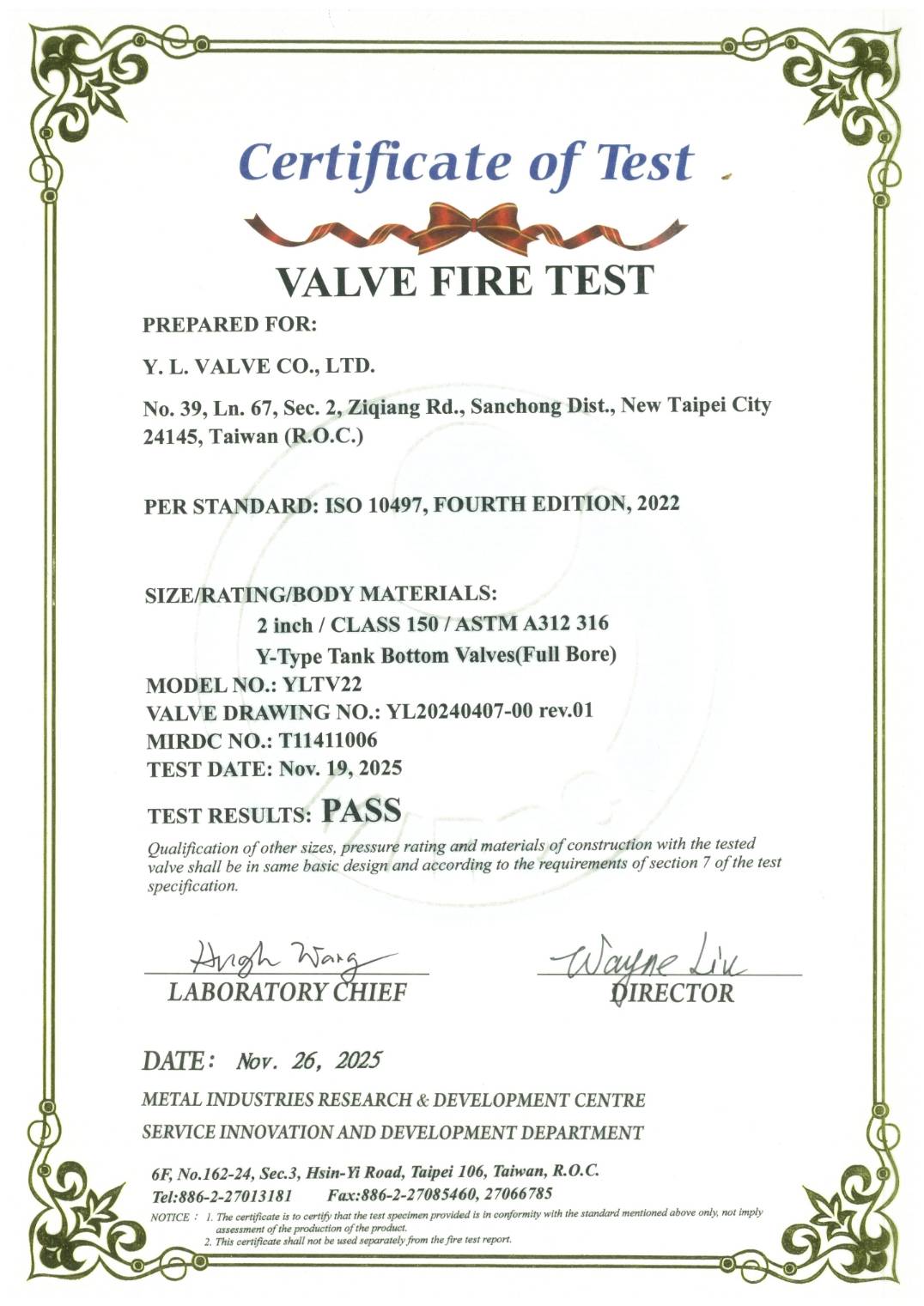 • 閥類製品國際檢測中心 雙重認證:API 598 密封零洩漏,ISO 10497:2022 防火最可靠。